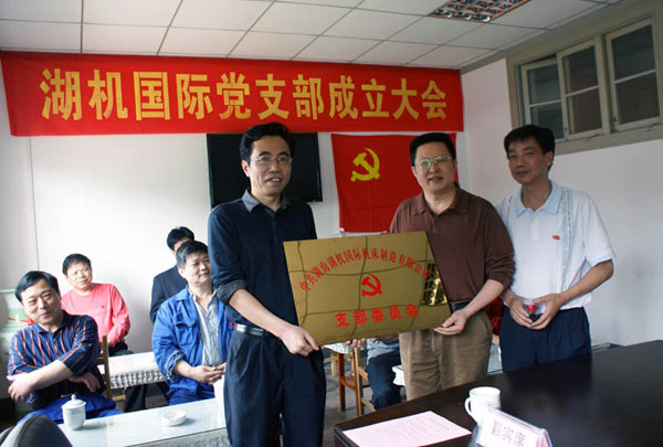 2011年5月13日,在天心區(qū)兩新工委的關(guān)心和指導(dǎo)下,中共湖機(jī)國際黨支部成立大會隆重舉行。天心區(qū)兩新工委書記、工商聯(lián)黨組書記蘭飛,兩新工委委員、工商聯(lián)副主席袁再銘等同志出席了會議。技術(shù)中心主任王新建同志主持了會議。