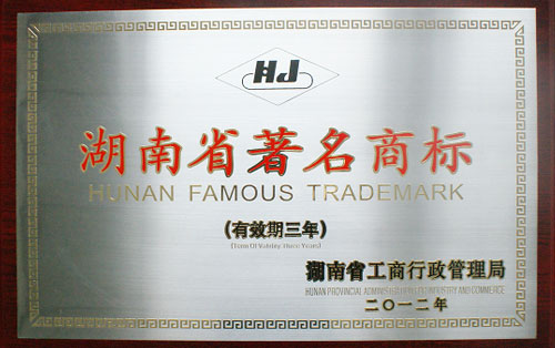 HJ商標(biāo)榮獲湖南省著名商標(biāo)