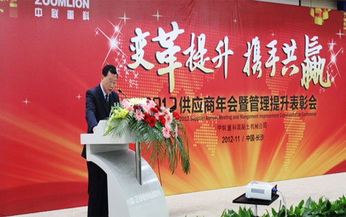 2012年11月21日,在中聯(lián)重科召開的2012年供應(yīng)商年會(huì)暨供應(yīng)商管理提升表彰會(huì)上,湖機(jī)國際榮獲“中聯(lián)重科2012管理提升銀獎(jiǎng)”。同時(shí),公司董事長(zhǎng)劉年紅作為獲獎(jiǎng)供應(yīng)商唯一企業(yè)代表在此次大會(huì)上發(fā)表了獲獎(jiǎng)感言。