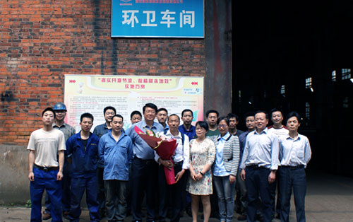 2015年4月30日,在湖南省委禮堂召開的慶?!拔逡弧眹H勞動節(jié)暨表彰湖南省勞動模范和先進工作者大會上,湖機國際工程配套分公司張啟澤獲得了湖南省勞動模范的表彰。上午10點20分,張啟澤載譽歸來,公司董事長劉年紅率公司高管團隊及部分員工前往迎接。