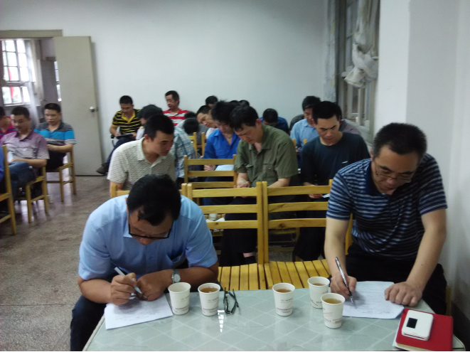 6月10日,公司安全生產專題培訓考核現場。董事長劉年紅(左一)、公司董事文義德(右一)在參加考試。