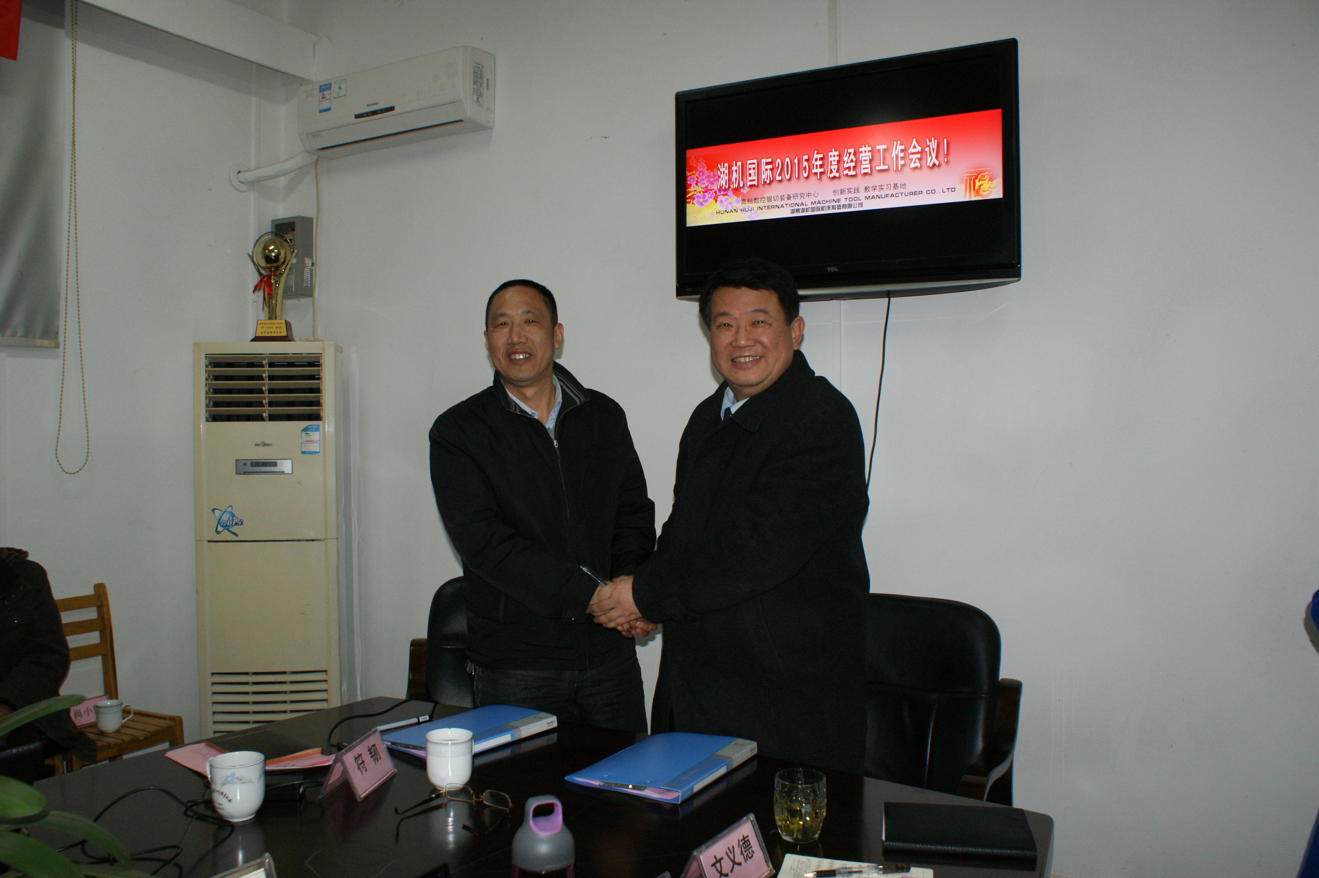 會(huì)上,會(huì)議首先聽(tīng)取了符韌總經(jīng)理題為《堅(jiān)定信心,破冰前行》的2015年工作總結(jié)及2016年工作思路報(bào)告。符總指出,2015年在國(guó)家宏觀經(jīng)濟(jì)增速持續(xù)下行的大環(huán)境下,公司的經(jīng)營(yíng)業(yè)績(jī)受到了創(chuàng)業(yè)6年來(lái)市場(chǎng)最強(qiáng)烈的沖擊。2016年公司各項(xiàng)工作應(yīng)以董事會(huì)提出的2016年工作思路為行動(dòng)綱領(lǐng),全面貫徹落實(shí)董事會(huì)新時(shí)期提出的兩大調(diào)整和打好三大攻堅(jiān)戰(zhàn)的工作要求。馬斌總助、柳勇總助、羅潤(rùn)湘副經(jīng)理、肖雪梅總助、胡偉部長(zhǎng)分別代表工程配套分公司、環(huán)衛(wèi)機(jī)械配套分公司、鋸床分公司、管理辦公室、財(cái)務(wù)審計(jì)部與公司總經(jīng)理簽訂了2016年目標(biāo)責(zé)任書和工作任務(wù)書。公司總工程師葉鈞針對(duì)2015年鋸床改進(jìn)提升和2016年公司科技工作作了主題發(fā)言。