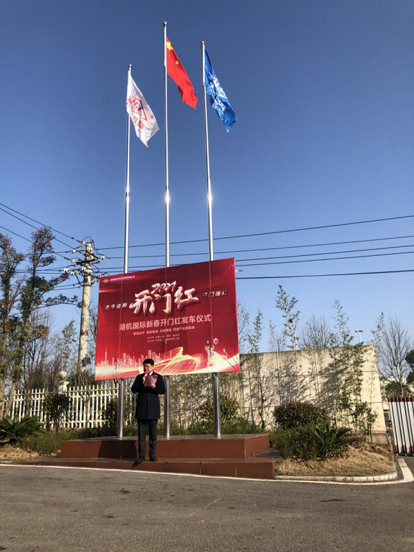 湖機(jī)國際總經(jīng)理符韌作了新春開門紅講話并宣布發(fā)車,董事長劉年紅、董事文義德、葉鈞,常務(wù)副總經(jīng)理肖雪梅等公司高管參加儀式。