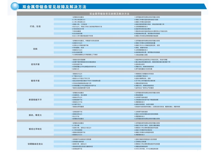 雙金屬帶鋸條常見(jiàn)故障及解決方法